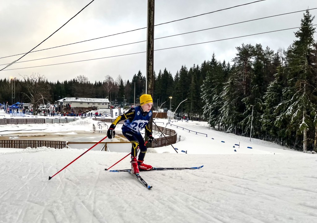 Jag har fått nya skidor så jag skulle upp och åka lite och så frågade min kompis om han fick följa med. Det var hans första gång han åkte skidor.